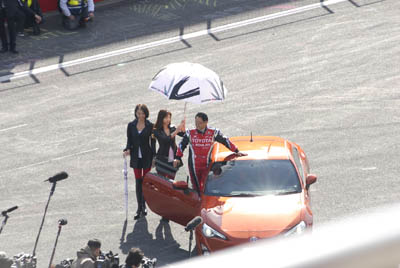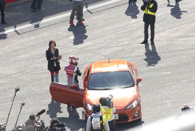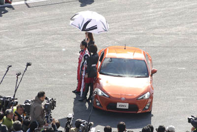 多くのプレスが待つ中をサーキットを一周して華々しくFT86のお披露目